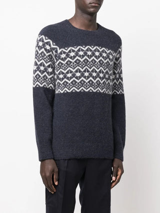 Brunello Cucinelli Mens Jacquard-Detail Crewneck Sweater in Navy