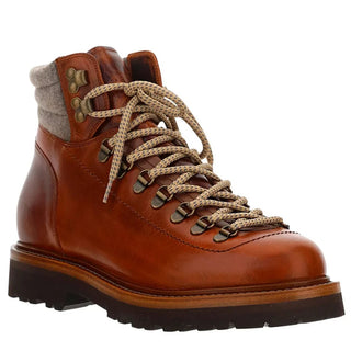 Brunello Cucinelli Mens Pebbled Leather Brown Shearling Boots