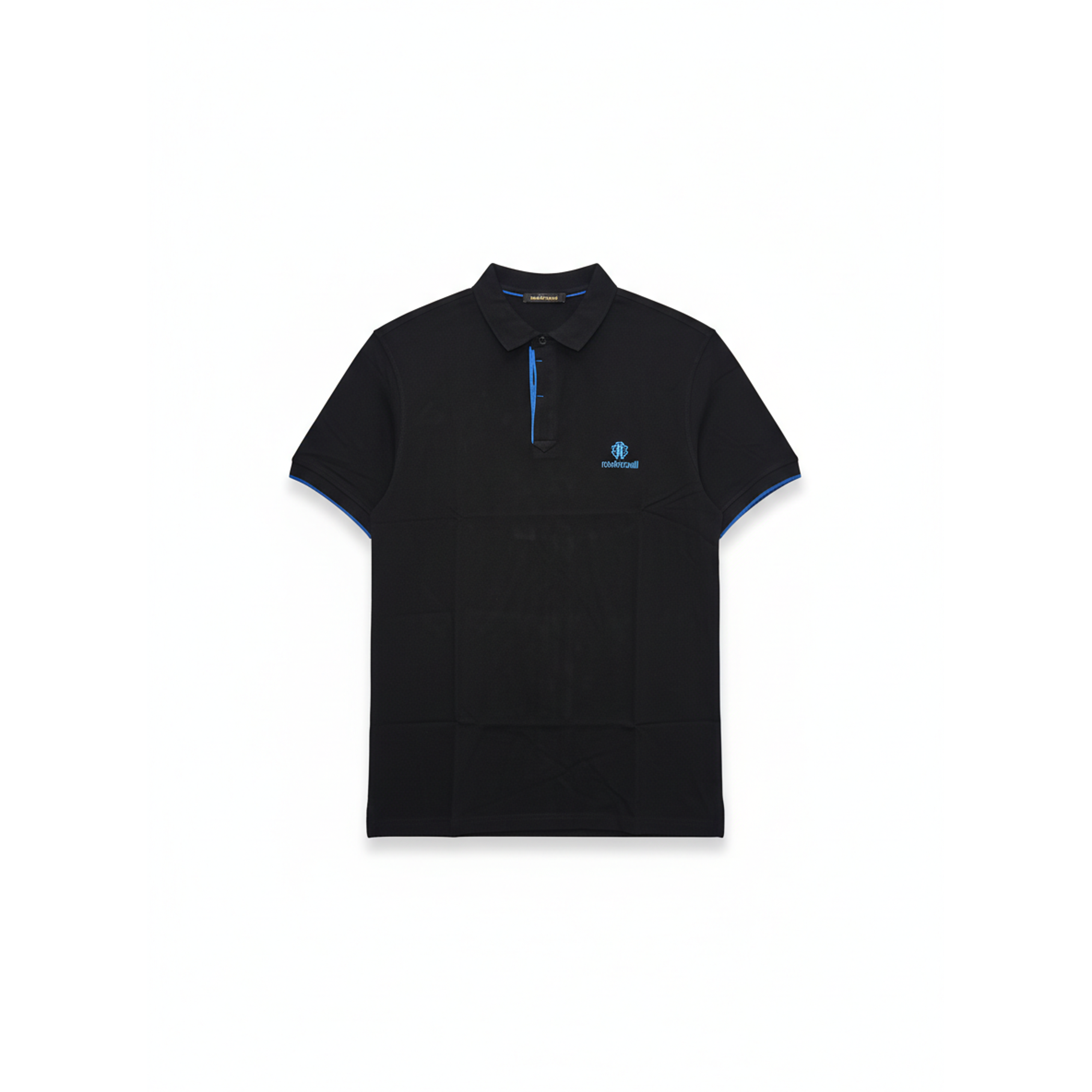 This Roberto Cavalli black shirt delivers understated designer style with a sleek, modern finish. Crafted from soft cotton, it offers a comfortable, breathable feel ideal for everyday wear. The black base is elevated with subtle blue trim at the sleeve cuffs, adding a refined contrast and signature Cavalli detail.