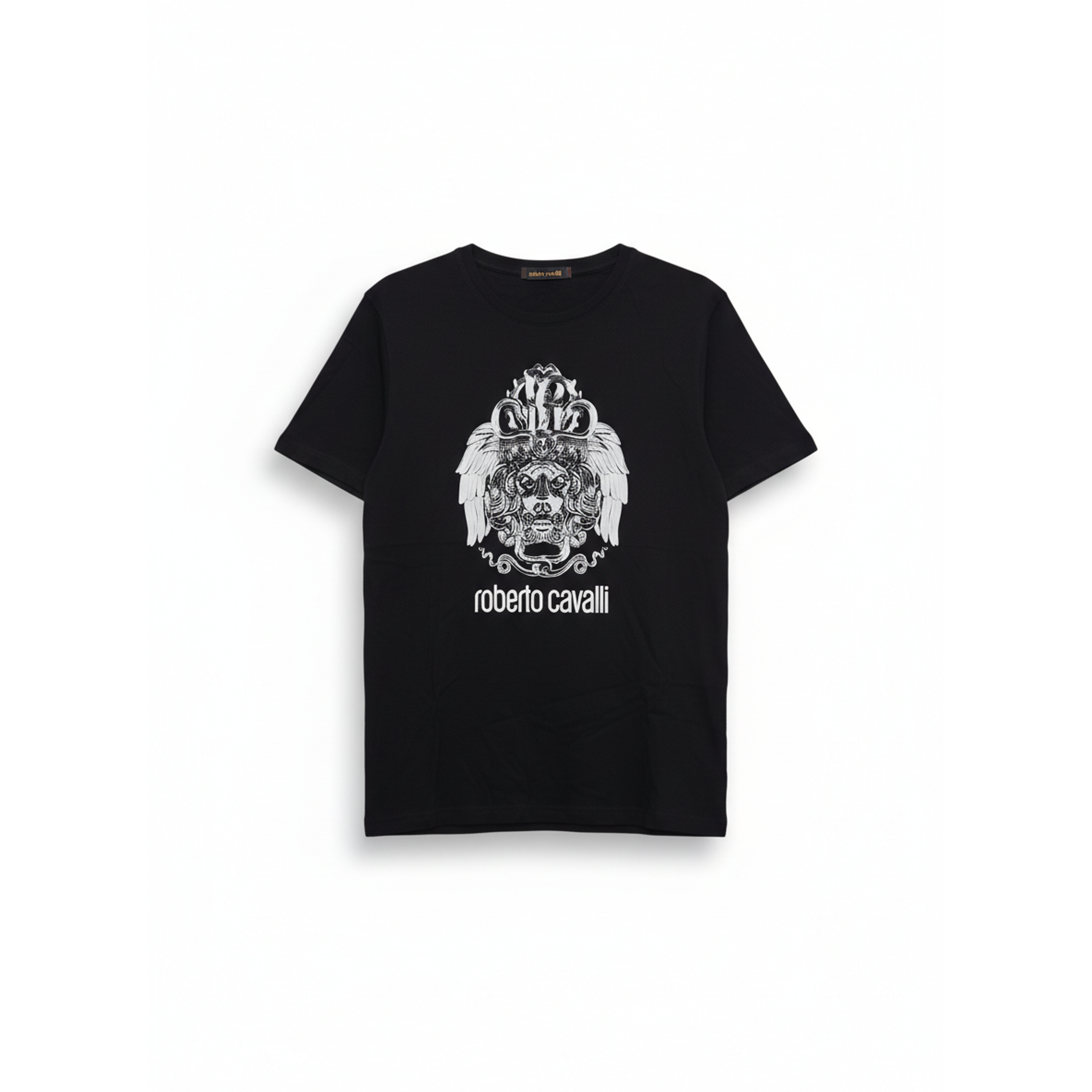 Make a bold statement with this Roberto Cavalli graphic T-shirt, crafted from 100% pure cotton for a soft, breathable feel. Designed in classic black, the tee features a striking mirrored serpent graphic with the Roberto Cavalli logo across the chest, reflecting the brand’s signature edgy and luxurious style. A versatile designer essential that works effortlessly from casual to elevated looks.