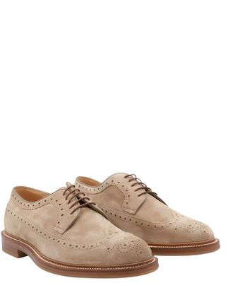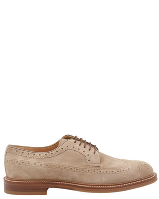 Brunello Cucinelli Mens Suede Brown Derby Shoes