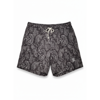 Brunello Cucinelli Paisley Print Charcoal Drawstring Swim Shorts