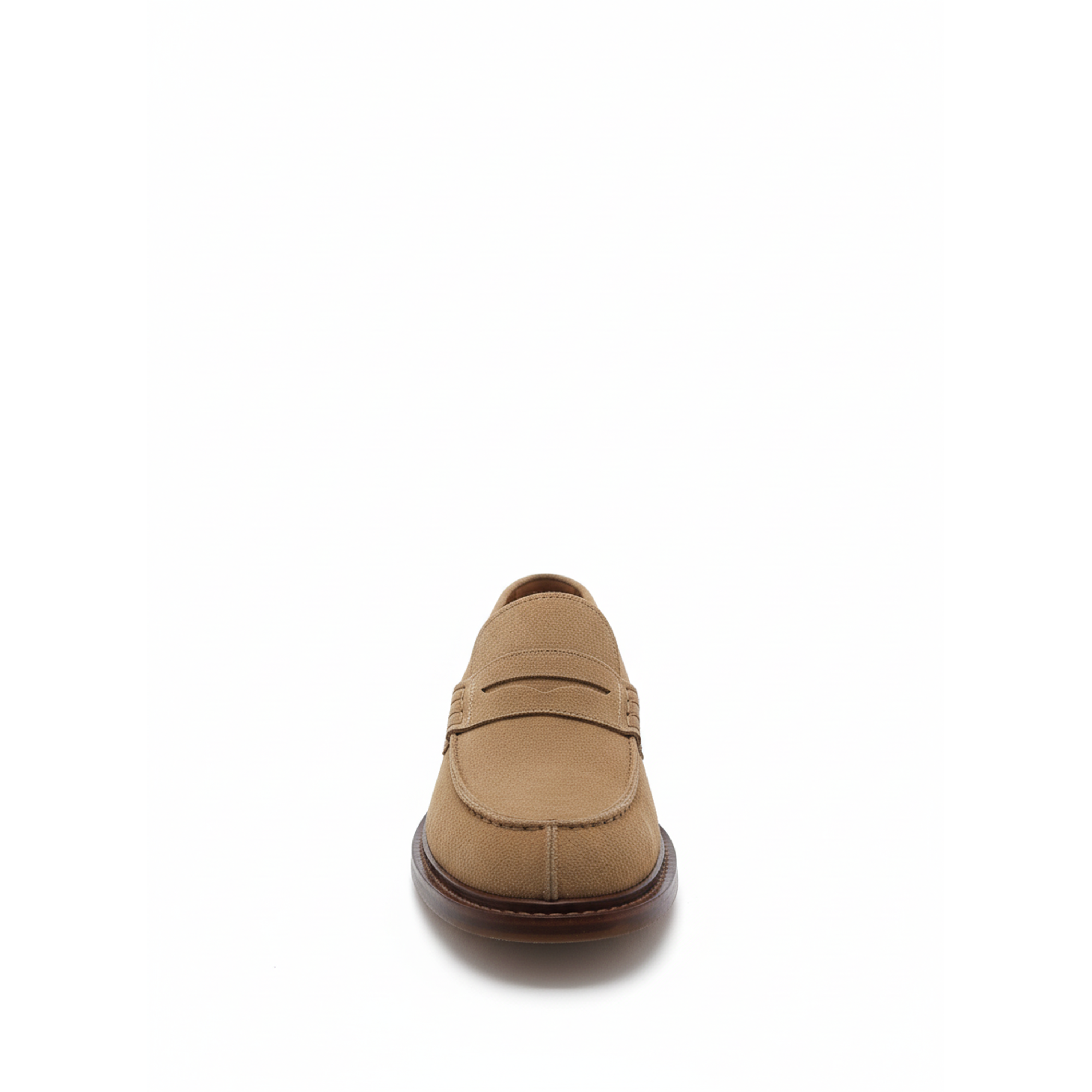These classic penny loafers are rendered in a soft, versatile tan suede. The design is elevated by a modern, chunky sole, blending timeless style with contemporary proportions.