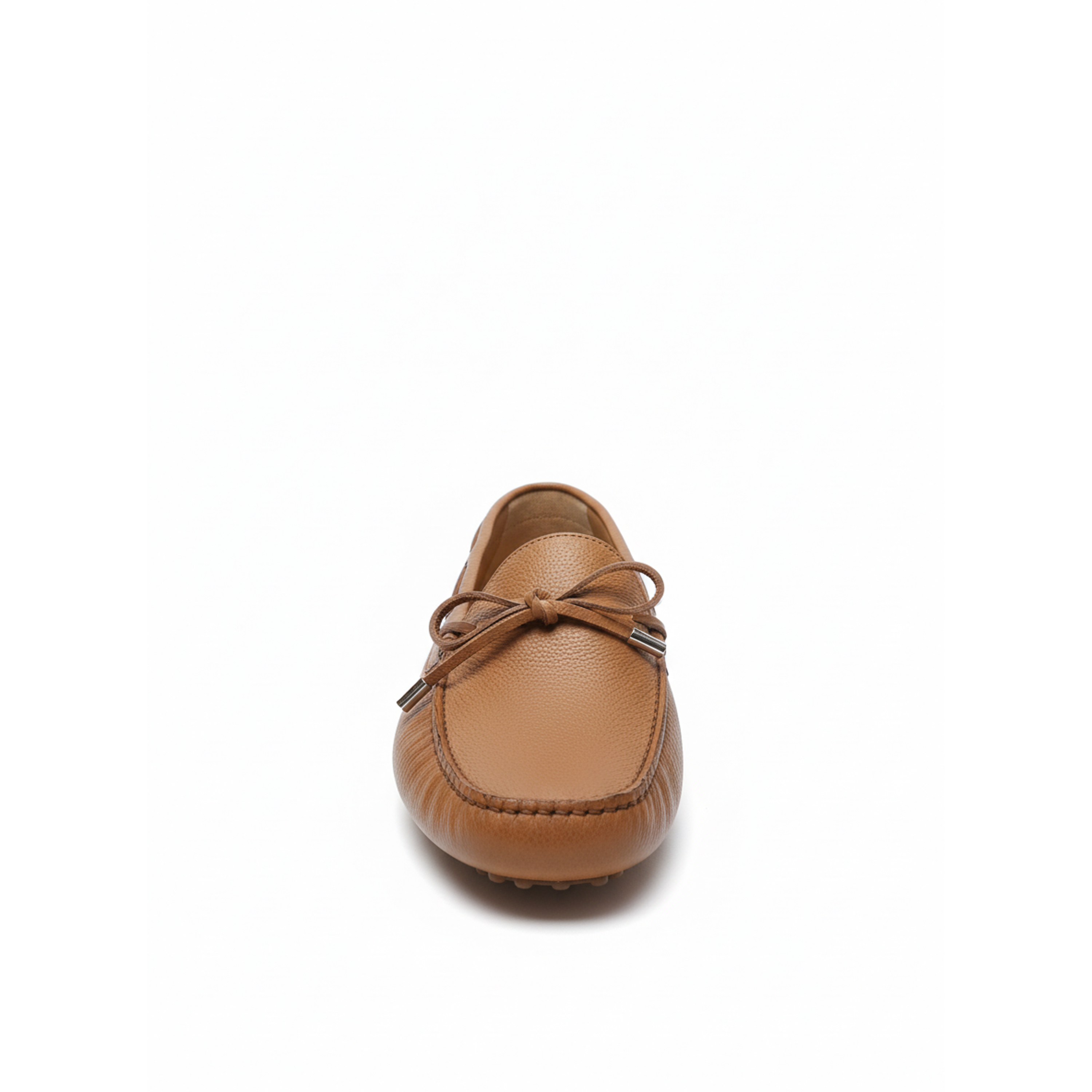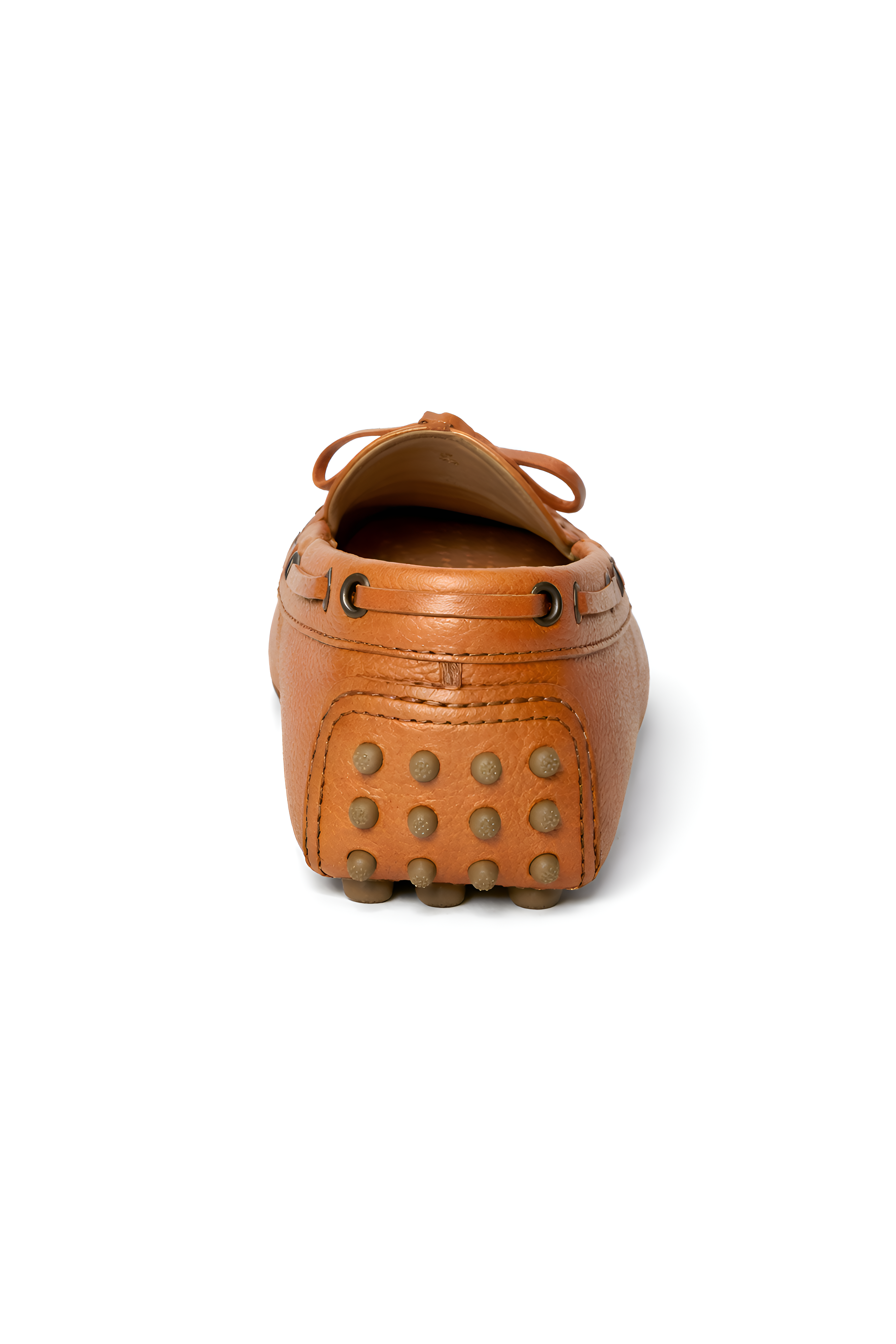 Crafted from grained leather, these driving loafers offer a refined yet relaxed style. The classic moc-toe construction and front tie detail add a timeless touch, making them a versatile choice for both casual and smart-casual occasions.