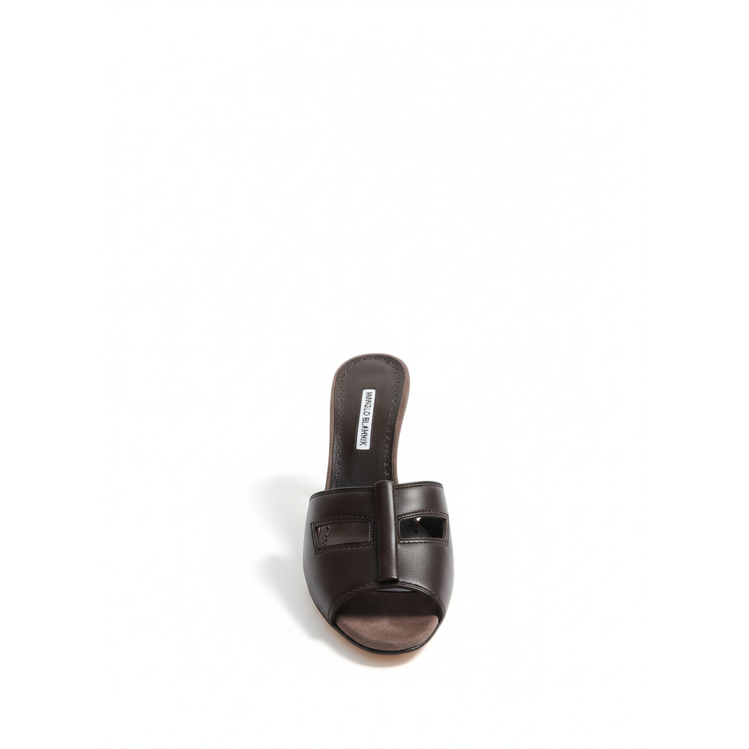 These elegant mules are crafted from smooth leather with a classic peep-toe design. They're a versatile choice for both daytime and evening looks.