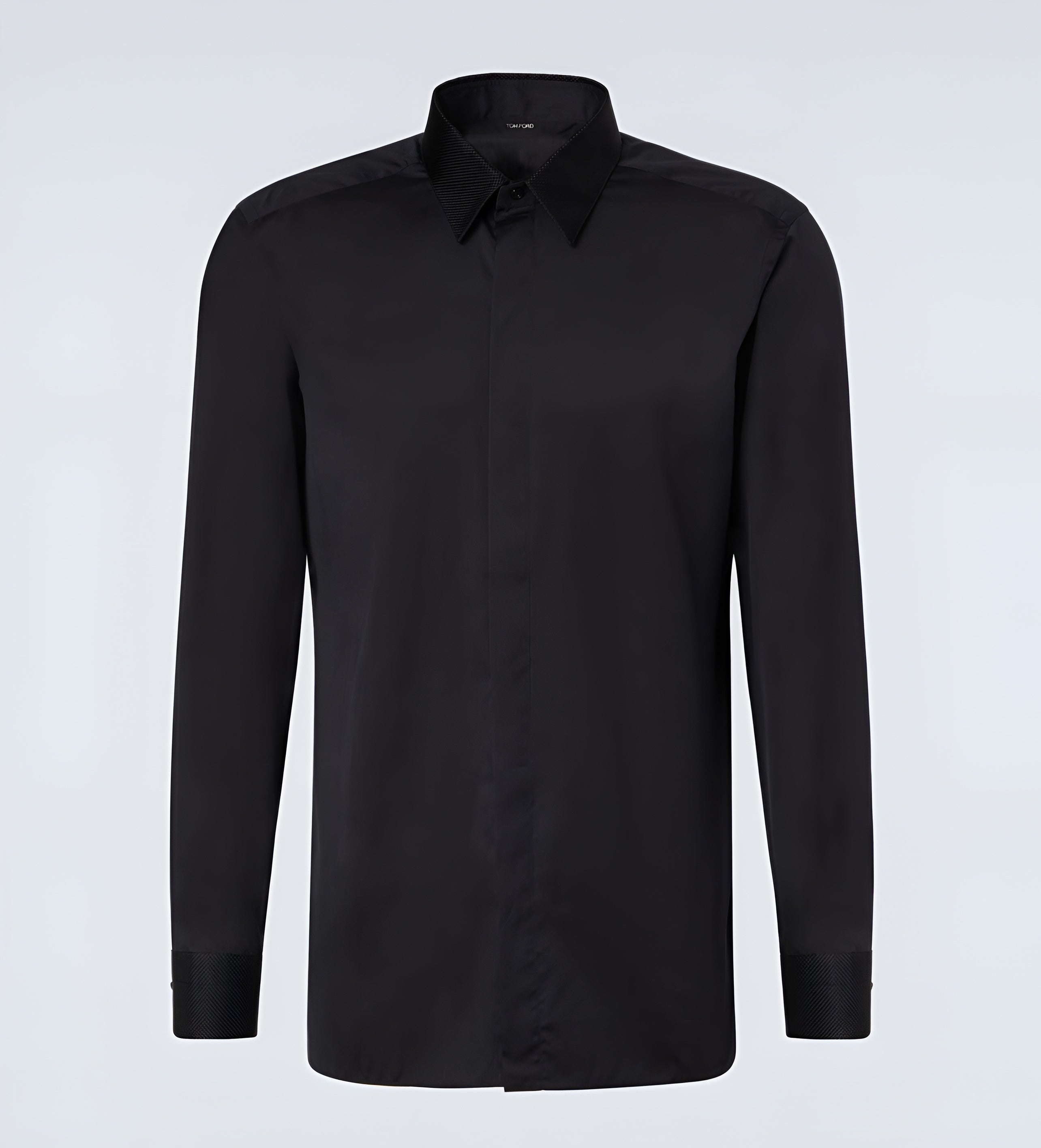 Discover the ultimate combination of style and comfort with the Tom Ford Men’s Black Viscose Point Collar Dress Shirt. Made from high-quality viscose material, this sleek and sophisticated dress shirt features a classic point collar design. Elevate your formal attire and make a lasting impression with this luxurious and professional shirt.