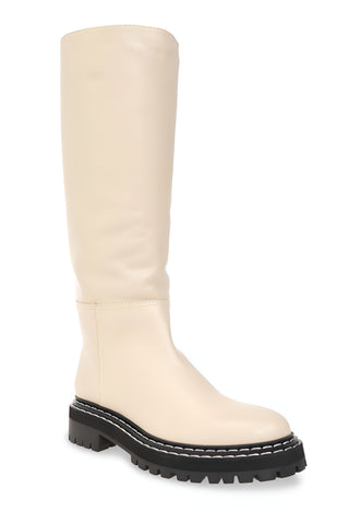 Proenza Schouler Cream Leather Tall Boots with Lug Sole