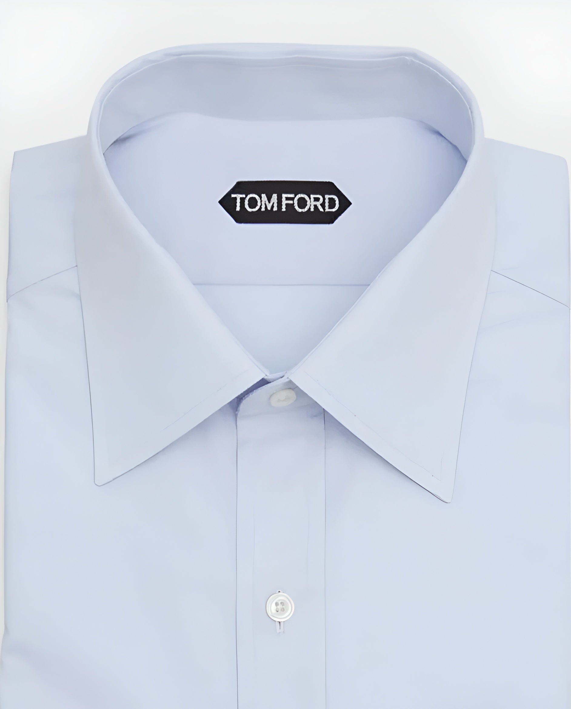 Expertly crafted by Tom Ford, this 100% cotton button down dress shirt is a must-have for any professional wardrobe. With a light blue color and fine attention to detail, this shirt exudes sophistication and impeccable style. Elevate your look and make a statement with this timeless piece.