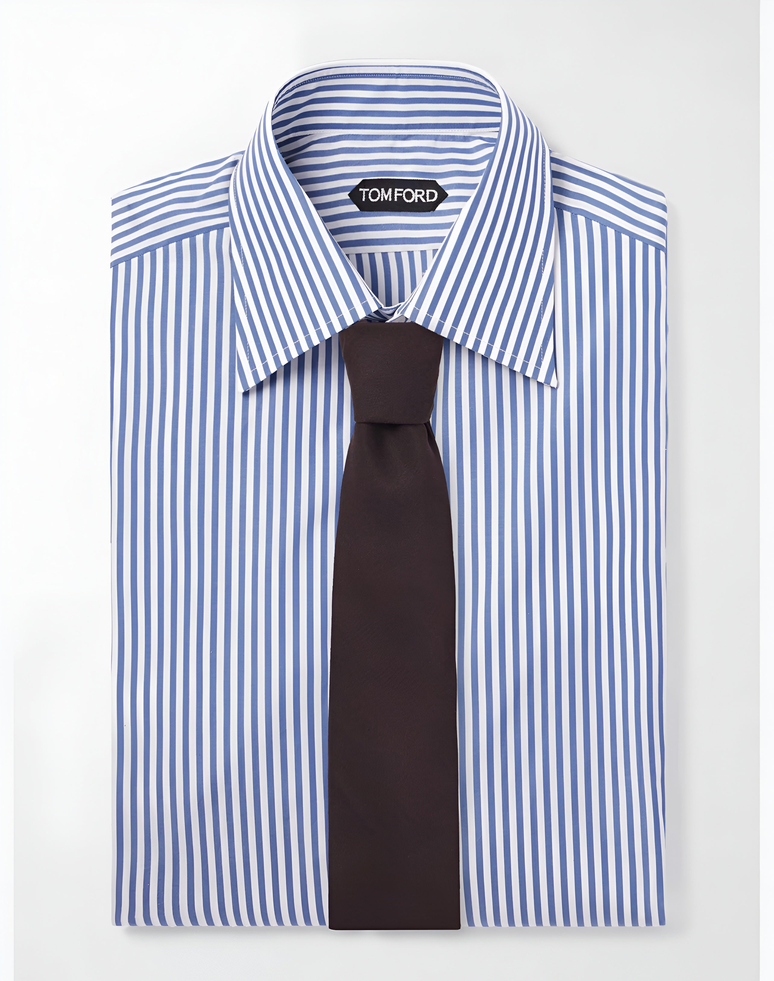 Experience superior comfort and style with the Tom Ford Men’s 100% Cotton Light Blue Striped Button Down Dress Shirt. Made from high-quality cotton, this dress shirt offers a light and breathable feel. The classic blue stripes and button-down design add a touch of sophistication to any outfit. Perfect for any occasion.