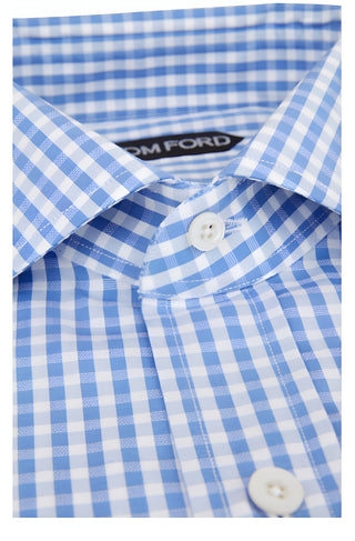 Tom Ford Men’s Light Blue Checkered Button Down Dress Shirt