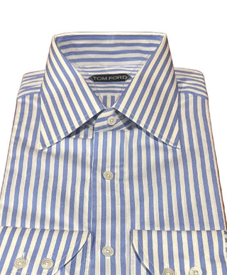 Tom Ford Men’s Blue & White Striped Button Down Dress Shirt