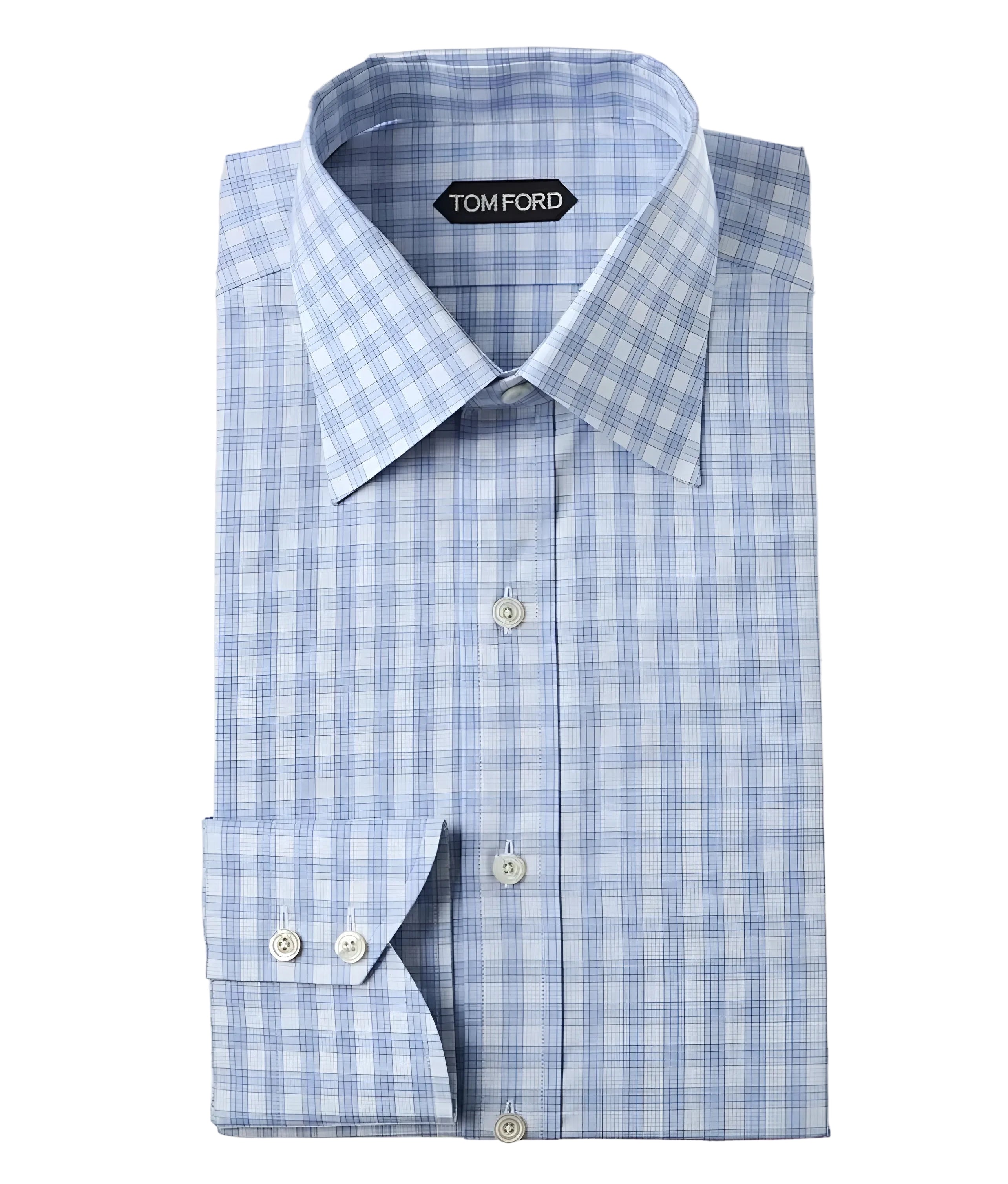 Expertly crafted with soft, breathable cotton, this Tom Ford dress shirt features a stylish light blue and white check pattern. The button-down design adds a touch of sophistication, while the high-quality material ensures comfort all day long. Perfect for both formal and casual occasions.