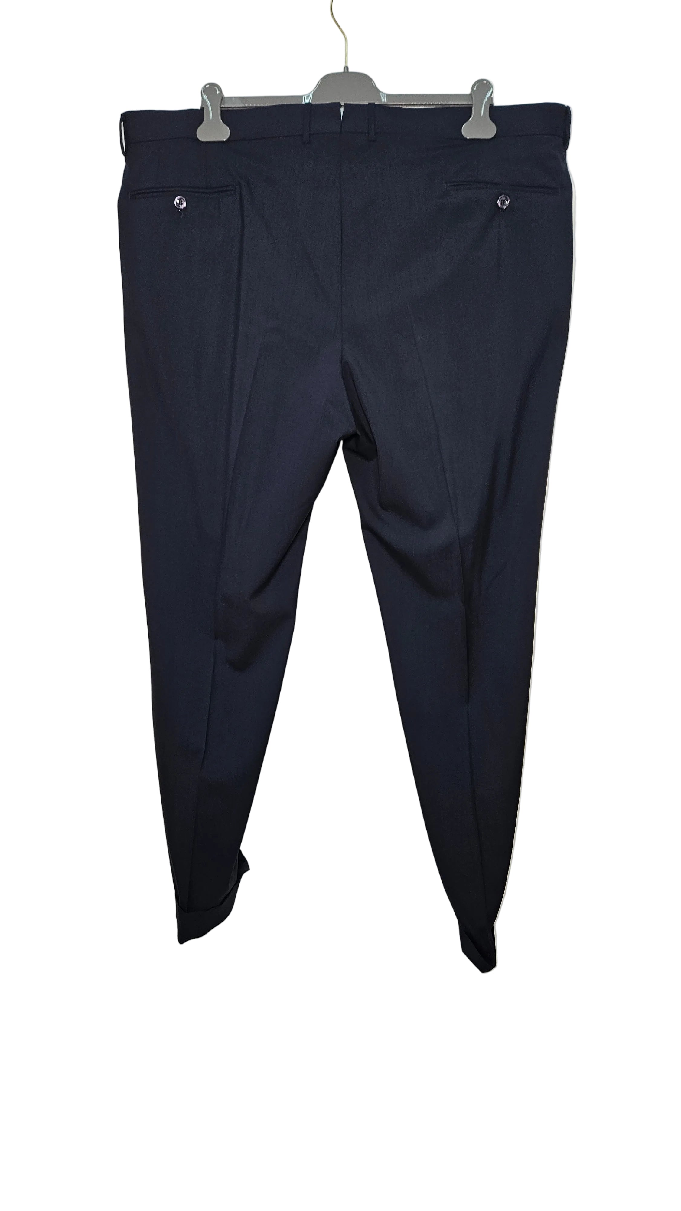 Crafted from luxurious 100% wool, these men's tailored trousers offer a sophisticated and refined foundation for any formal or business casual ensemble. They feature a clean flat-front design, belt loops, and a single buttoned jetted pocket on the back, ensuring a polished and timeless look.