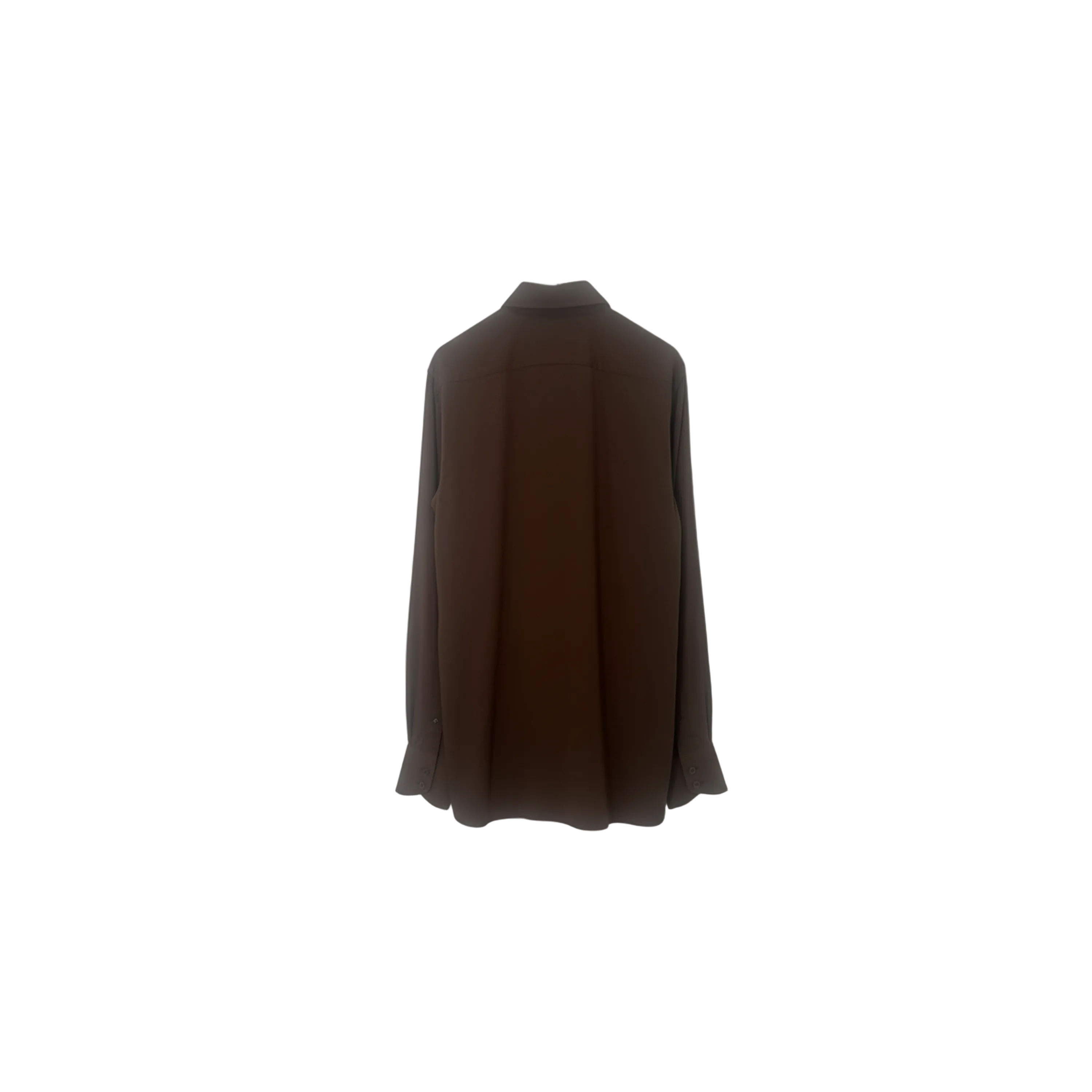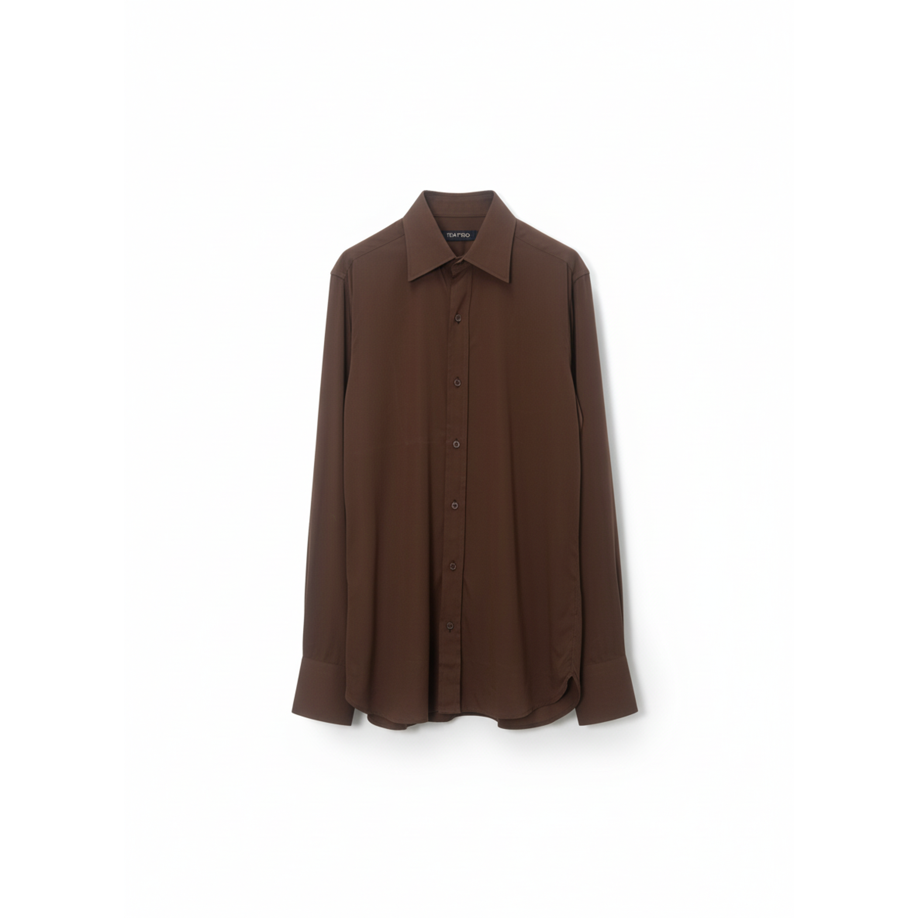 This Tom Ford shirt offers a refined and minimalist aesthetic with its smooth fabric and clean lines. Its classic design and rich brown hue make it a versatile piece for both formal and smart-casual occasions.
