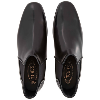 Tods Mens Heeled Leather Chelsea Boots in Black