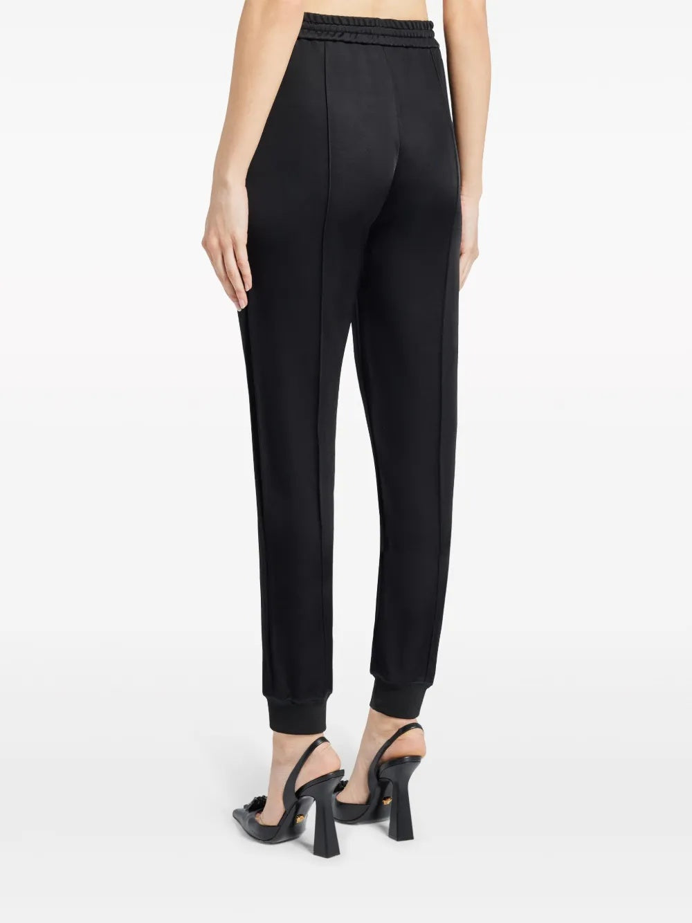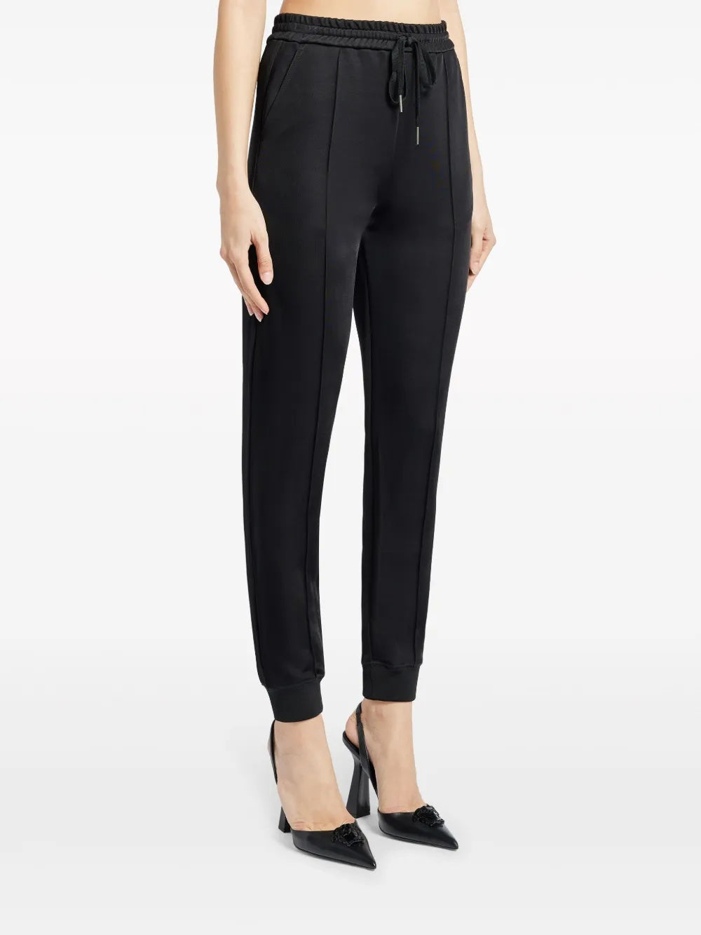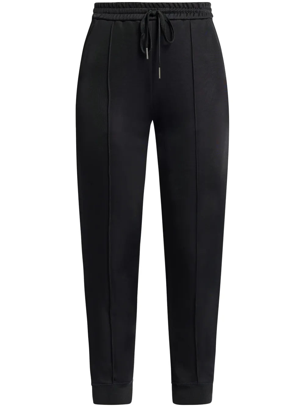 These Tom Ford women's joggers offer a relaxed yet refined silhouette, crafted from a comfortable cotton blend material. They feature a practical drawstring waist and distinctive front pintuck seams, providing a tailored touch to a casual staple. Ribbed cuffs complete the design, making them ideal for elevated everyday wear.