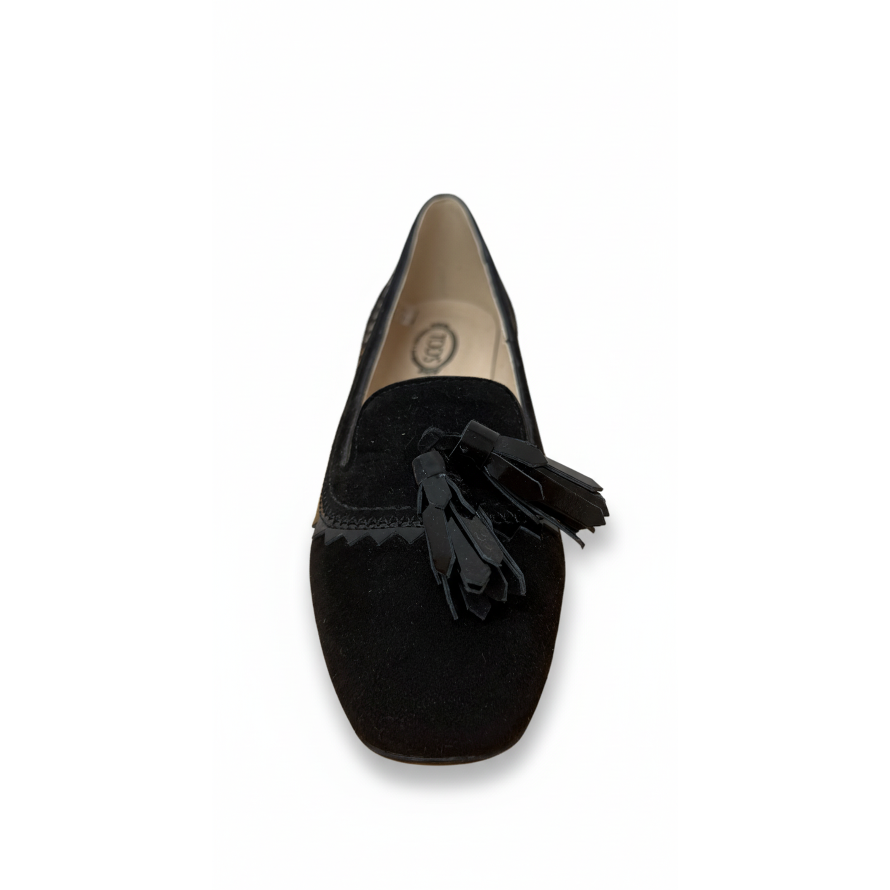 Designed for the sophisticated woman, this footwear embodies elegance and effortless allure. Presented in a distinguished Black hue, this piece exemplifies superior craftsmanship. Discover the pinnacle of luxury with this Tod'S shoes, designed for the discerning men. Presented in a distinguished Black, this piece reflects impeccable attention to detail. BALLERINA FLAT 47A NAPPINE SBIZZATO
