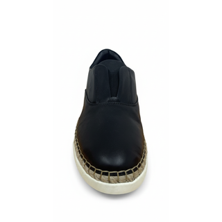 Brunello Cucinelli Leather Black Women's Espadrilles with Straw Bottom