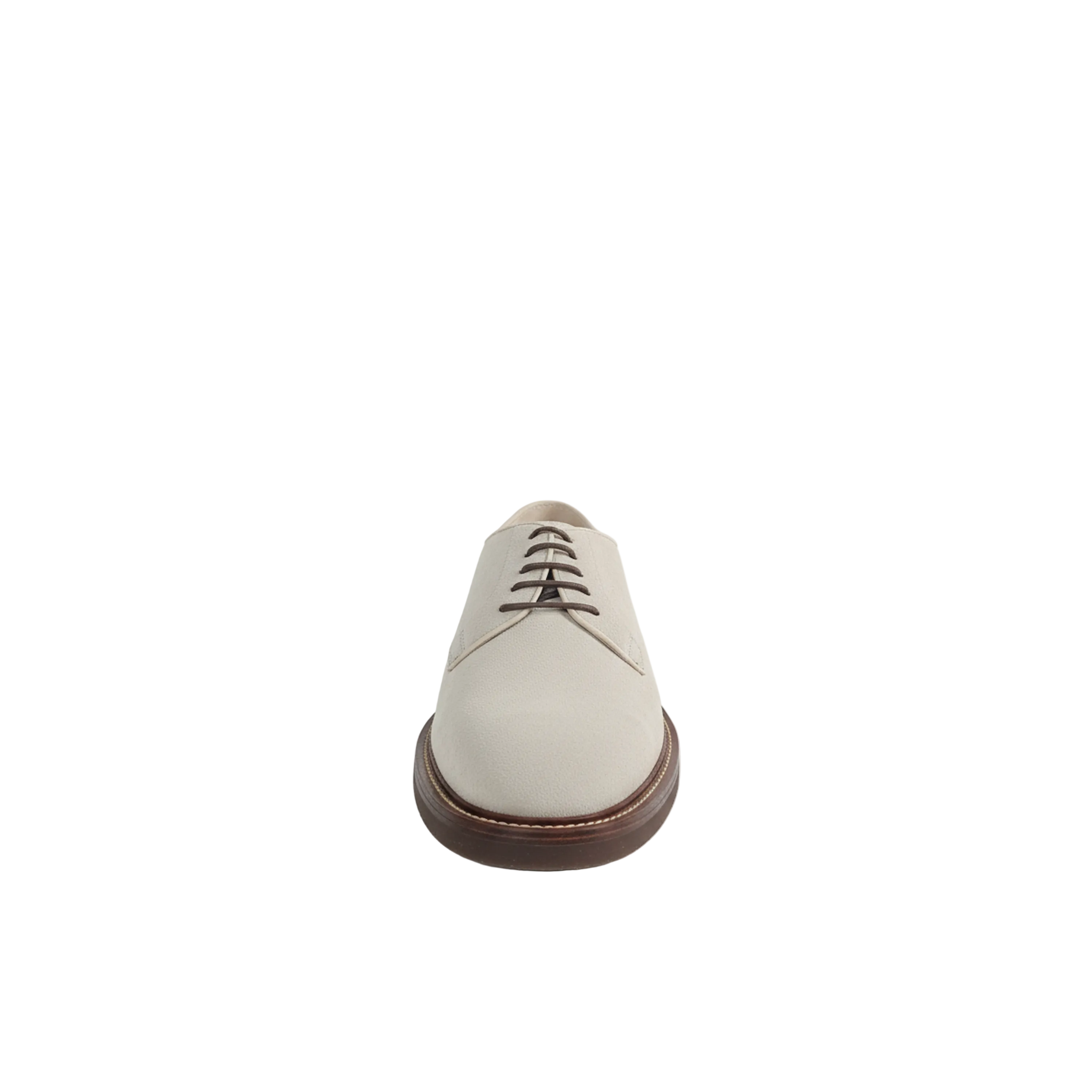 The Brunello Cucinelli Men's Suede Lace-Up Shoes in Off-White feature high-quality suede construction, offering both durability and a refined aesthetic. Their lace-up design ensures a secure fit, enhancing comfort during extended wear. Ideal for both casual and formal settings, these shoes exemplify Italian craftsmanship and timeless style.
