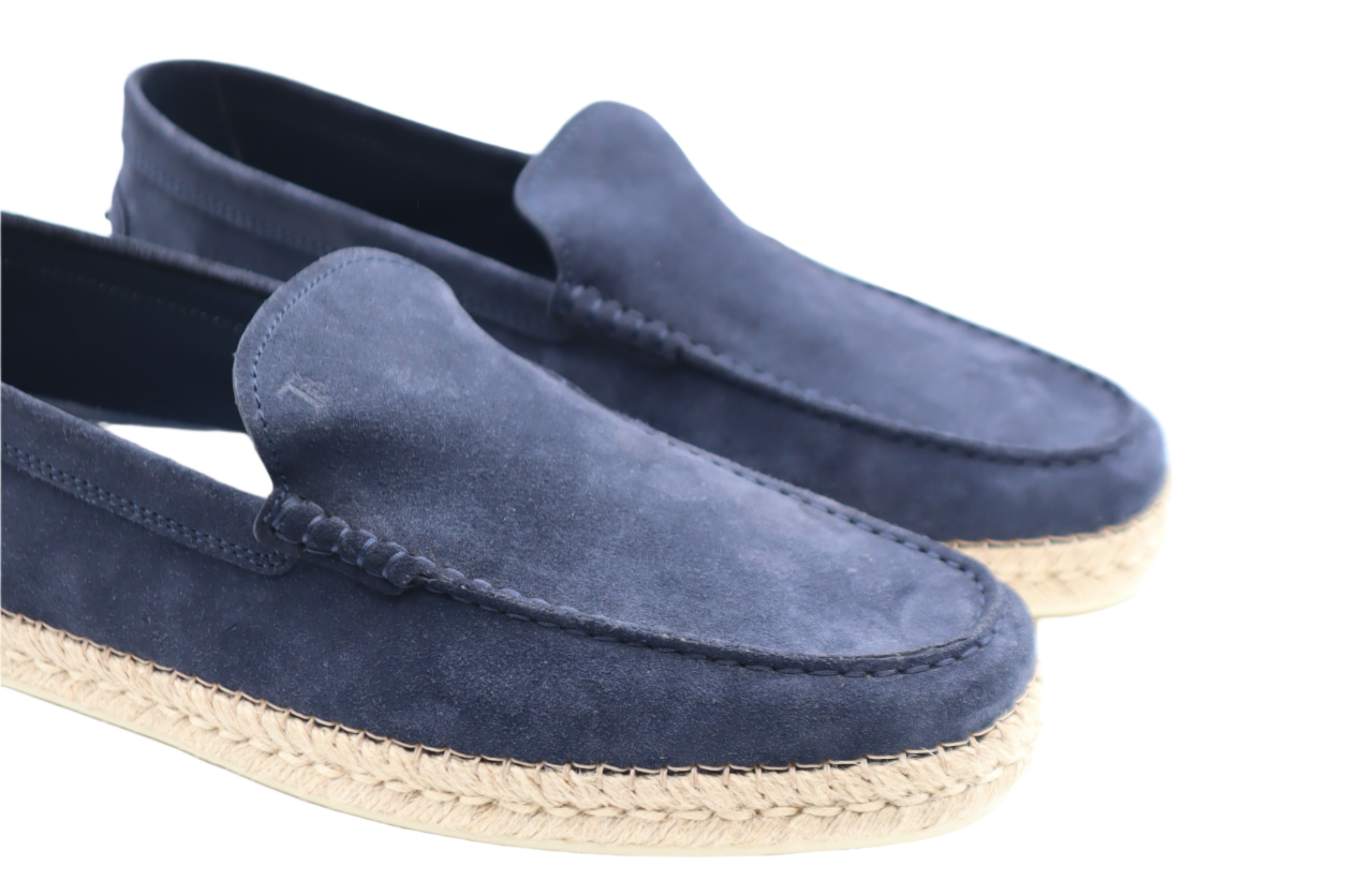 Expertly crafted with navy blue suede and a raffia sole, these Tods slip-on espadrilles offer a perfect blend of style and comfort. The high-quality materials used result in a durable and fashionable shoe, making it a must-have for any fashion-forward man.